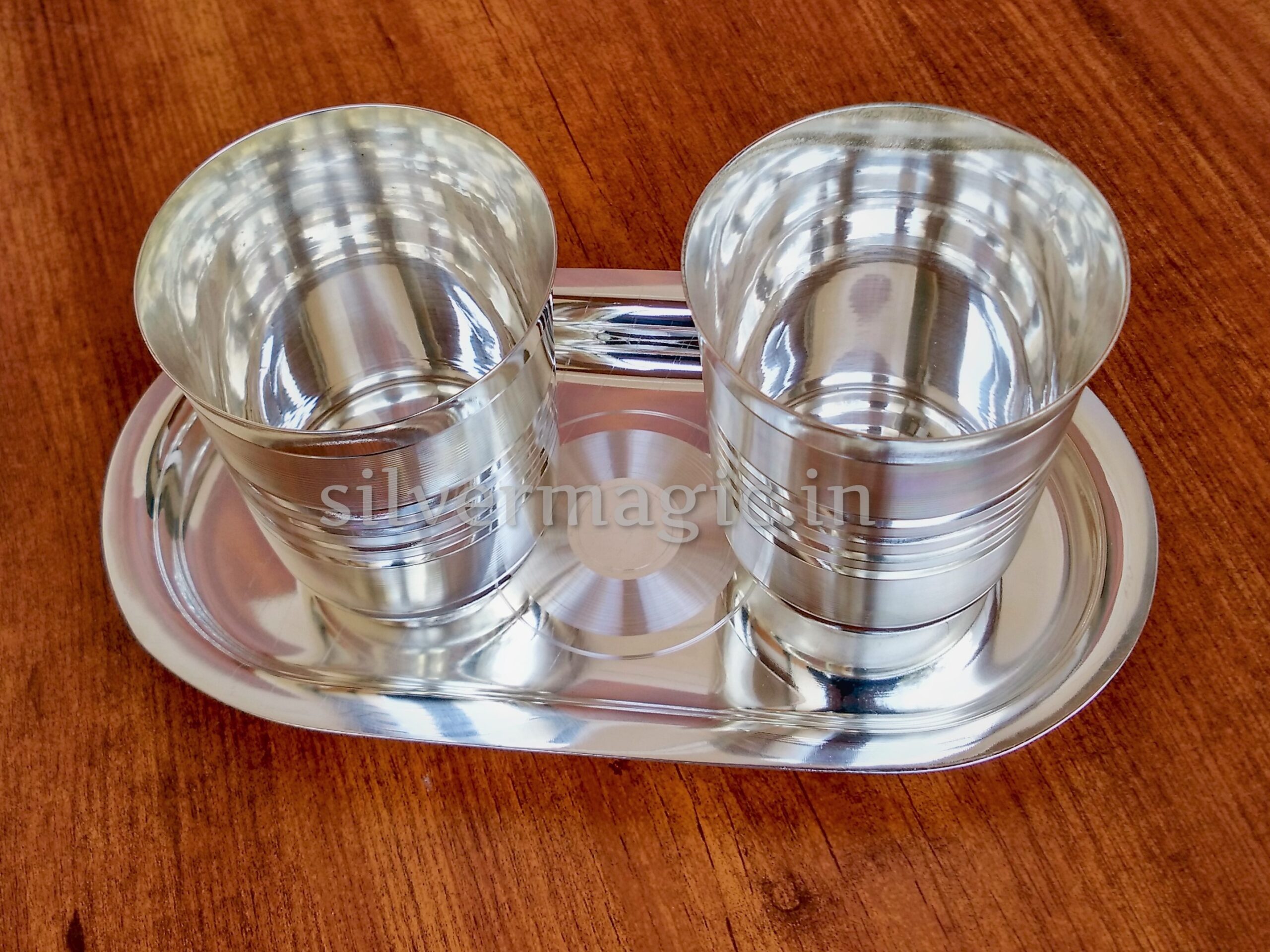 Elevate your entertaining experience with our stunning silver-plated glass set, complete with a matching tray. Perfect for serving water, juice, or other beverages at gatherings, parties, or special occasions